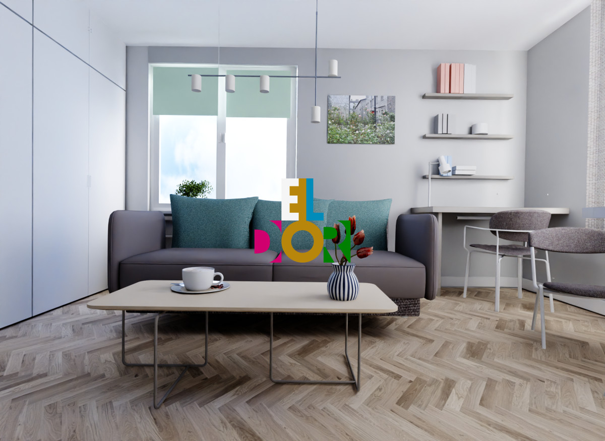 Duży pokój o wymiarach 480cmx360cm z dwoma oknami jest bardzo ustawny. Mieszczą się w nim ( wizualizacja): dwie szafy 120cmx60cm, duża kanapa ze stolikiem kawowym, biurko z szafkami do pracy lub nauki oraz stół obiadowy.