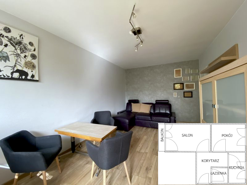 W mieszkaniu znajduje się przestronny pokój z wyjściem na balkon,widna kuchnia, sypialnia z zabudowaną szafą, łazienka oraz korytarz. Mieszkanie jest umeblowane oraz wyposażone. Wymaga jedynie odświezenia, można w nim od razu zamieszkać. Lokal jest widny i przytulny.