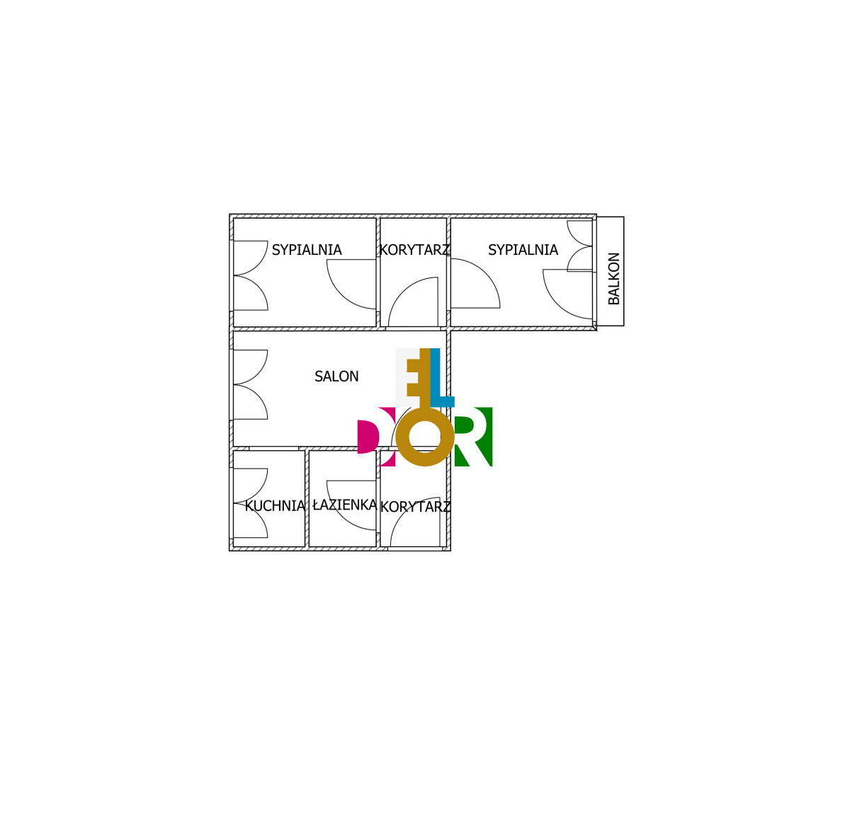 W skład lokalu wchodzą: salon, dwie ustawne sypialnie, kuchnia z oknem, dwa korytarze oraz łazienka. Z jednej z sypialni wychodzi się na balkon.