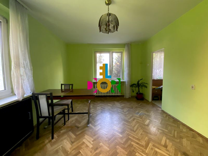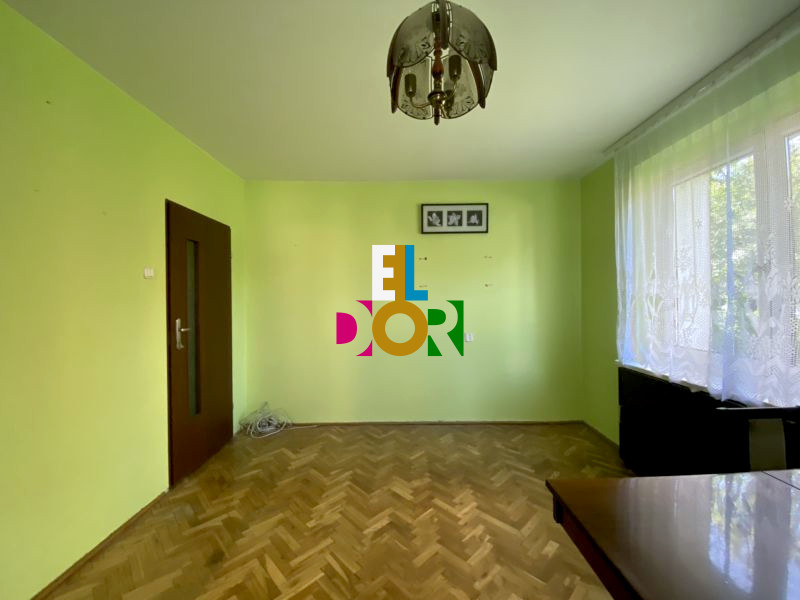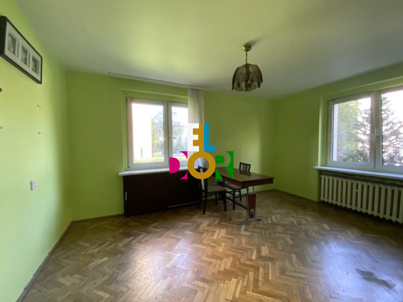 W skład lokalu wchodzą: duży ustawny salon, widna kuchnia, łazienka oraz korytarz. Pokój jest widny oraz przestronny- są w nim dwa duże okna. Kuchnia posiada również duże okno. W mieszkaniu wygładzone są ściany, płytki są starszego typu, w pokoju parkiet do odświeżenia. Nowy nabywca może przeprowadzić remont, jak również zamieszkać w nim po odświeżeniu.