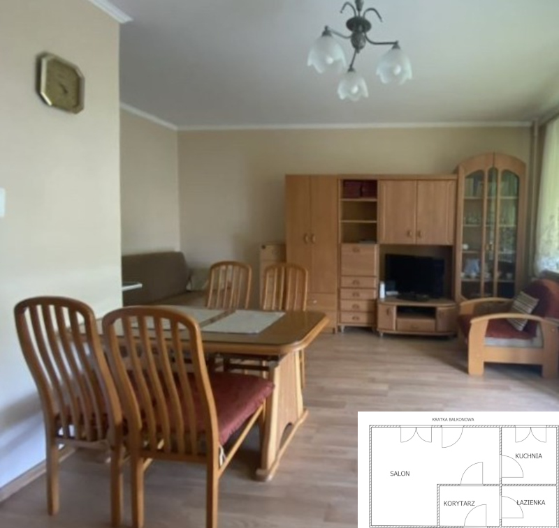 W mieszkaniu znajduje się przestronny pokój z wyjściem na balkon,widna kuchnia, sypialnia z zabudowaną szafą, łazienka oraz korytarz. Mieszkanie jest umeblowane oraz wyposażone. Wymaga jedynie odświezenia, można w nim od razu zamieszkać. Lokal jest widny i przytulny.